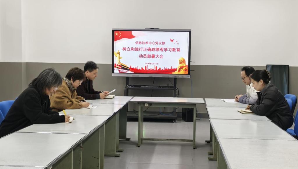 2026年3月13日下午,信息技术中心党支部在知行楼121室召开树立和践行正确政绩观学习教育工作启动部署会,支部全体党员参会,会议由支部书记刘大海主持。